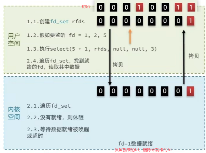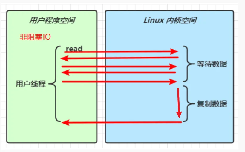 调用selector的select()会阻塞到channel发生了读写就绪事件,这些事件发生,select()方法就会放回这些事件交给thread来处理。