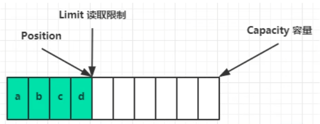 • limit,表示缓冲区可以读取的最大字节数,不能改变