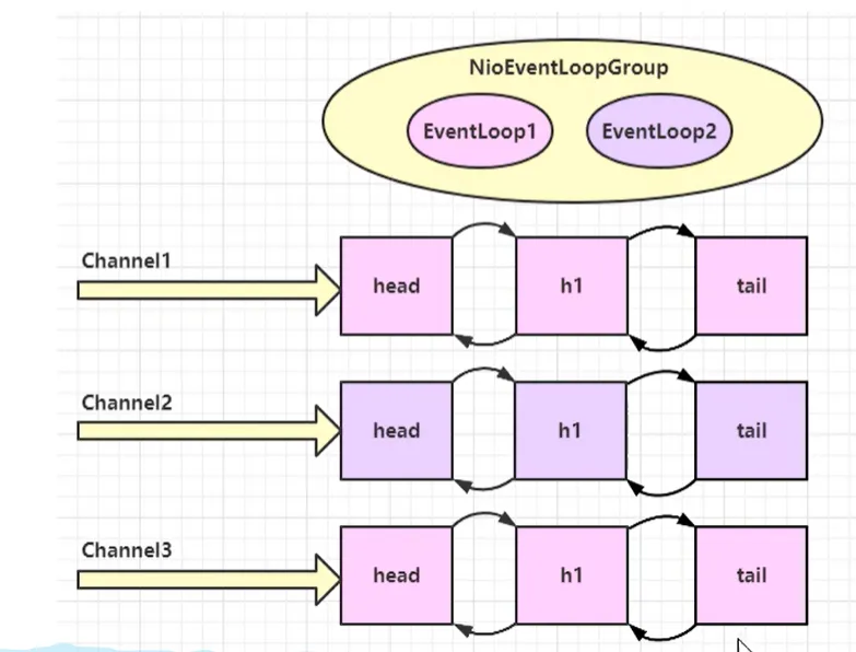 • EventLoopGroup(事件循环组)是一组EventLoop,Channel一般会调用EventLoopGroupregister方法来绑定其中一个EventLoop,后续这个Channel上的IO事件都会被这个EventLoop处理(保证IO事件处理时的线程安全)